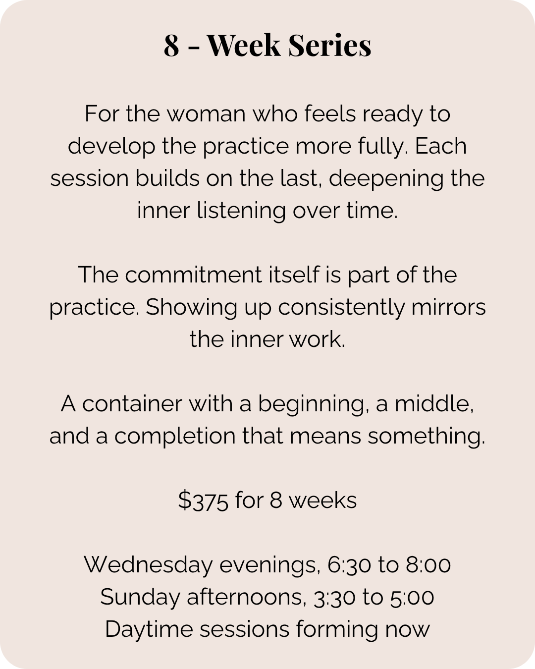 This is the foundation beneath all of the retreat work. Every woman who arrives here first arrives at everything else more ready. But it is also complete on its own, for the woman who simply wants a way to return to herself, again and again, at her own pace.
